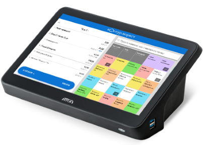Рассчитан на большие нагрузки при работе в рознице, общепите, сфере услуг. Подходит для торговли крепким и слабым алкоголем. Диагональ сенсорного экрана 11.6”. POS-терминал работает только в паре с фискальным принтером чеков: на терминале кассир создает чек и отправляет его печататься на принтере.
